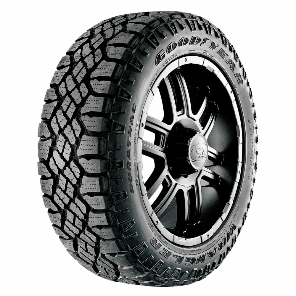 - Goodyear Wrangler Duratrac Tire offers superior off-road handling in dirt, gravel and mud, and smooth on-road handling in dry, wet and wintry conditions