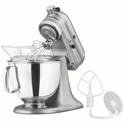 - Includes pouring shield, coated flat beater, coated dough hook and wire whip