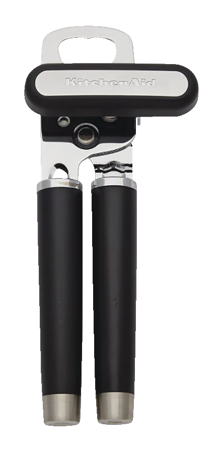 - KitchenAid Gourmet Hard Handle Can Opener features an easy crank with oversized knob for quicker lid removal